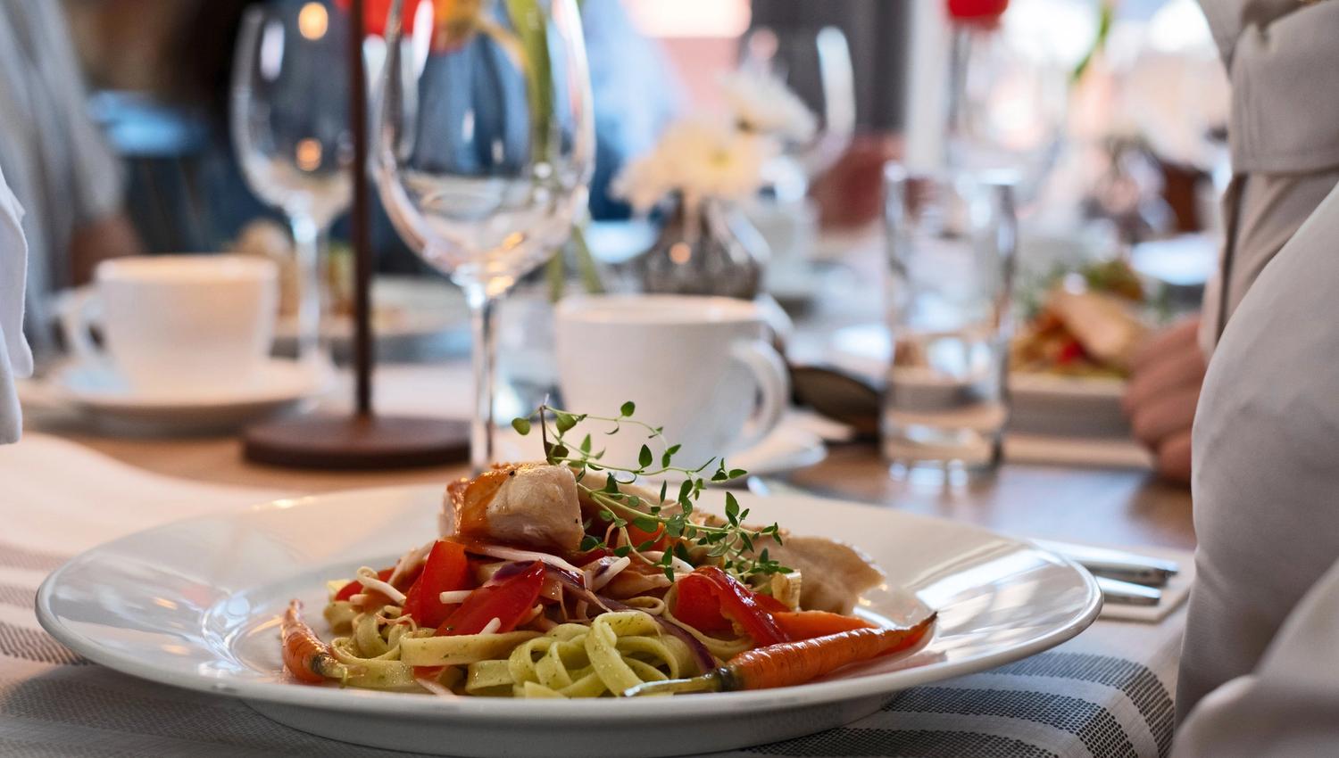 Our restaurant is proud to serve dishes crafted from the finest locally sourced ingredients. Enjoy a delicious dinner, a steaming hot coffee, or a refreshing glass of apple juice in our atmospheric dining rooms. Don’t miss our exquisite 4-course dinner, where seasonal ingredients take center stage. The restaurant is open to everyone and is a popular choice for both hotel guests and visitors exploring the area.