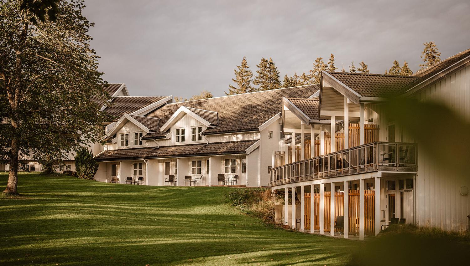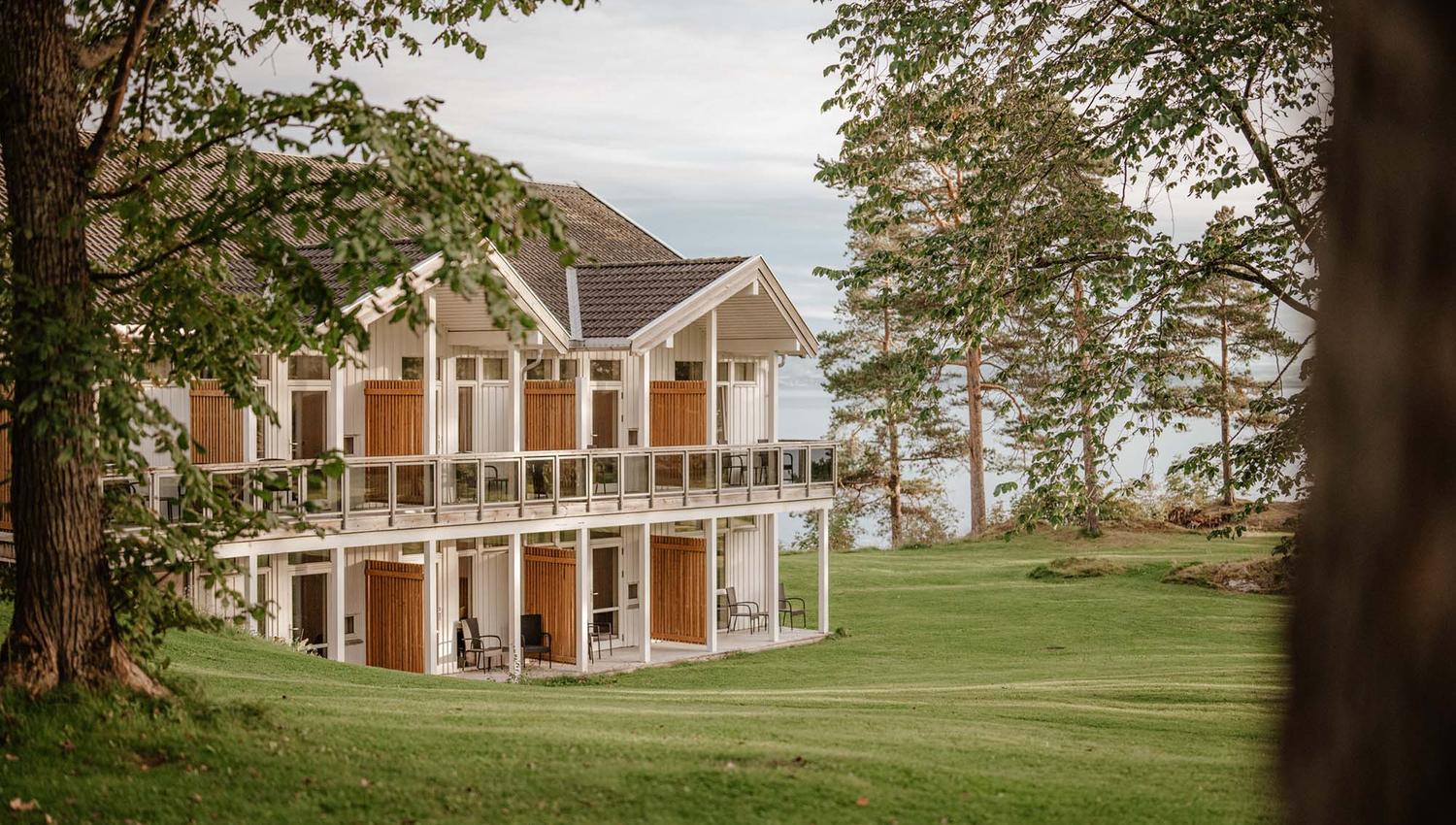 Half the rooms are fjord facing, while the other half face the garden. Some have a veranda, others have a direct access to the park. All rooms have living rooms and are suitable for the disabled.
