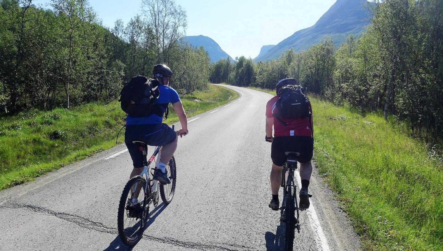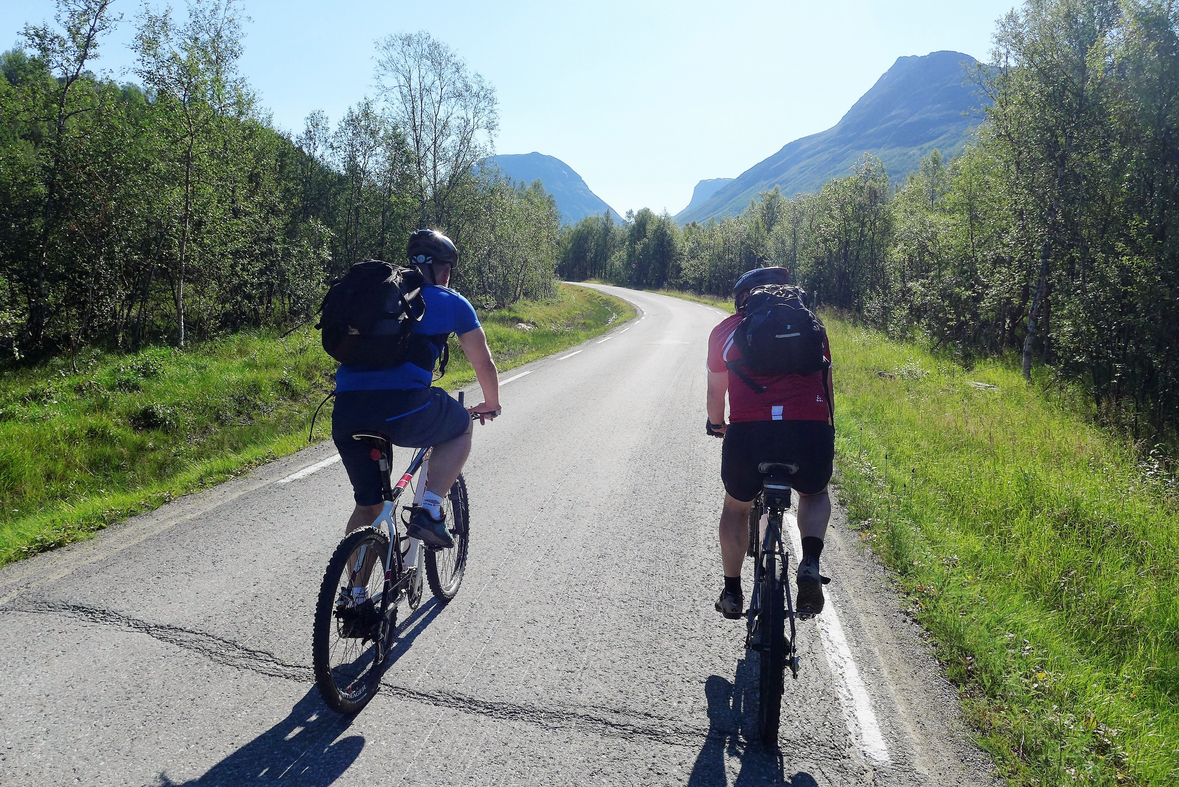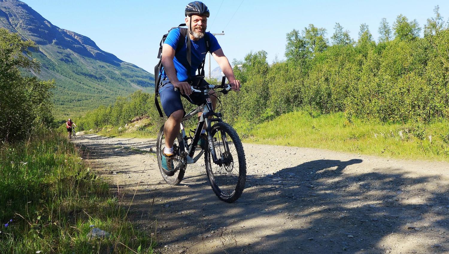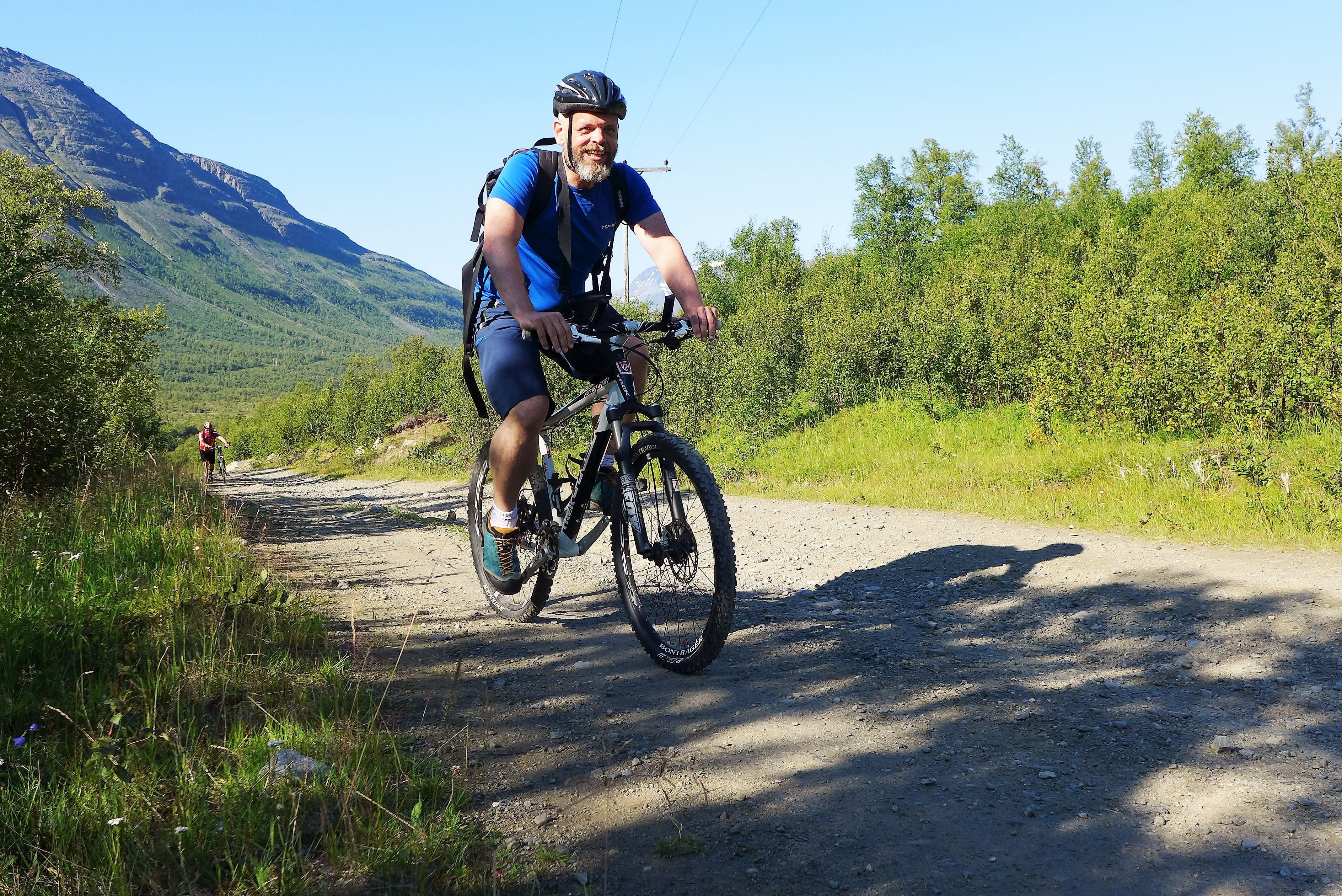 The Lavkaløypa is a tough ride. It's 68 kilometres (42 miles) long, and its highest point is at an elevation of 800 metres (2,600 feet), so you certainly feel it in your legs, bottom and back afterwards. However, it's not all that technically challenging. The descents are mainly on gravel tracks, good for less experienced off-roaders. The steep ascents at the start definitely make your thighs burn, but what do you do when you can't take any more? You get off your bike and push it. So the Lavkaløypa is a route for able-bodied people of reasonable fitness, not just off-road experts. If you think of the Lavkaløypa as an all-day excursion, build in several food stops and go at your own pace, then you will have a wonderful day in magnificent natural scenery. www.nordnorge.com rode it without any special experience of off-roading, and we completed it in fine style, though we definitely weren't contenders for the speed record.