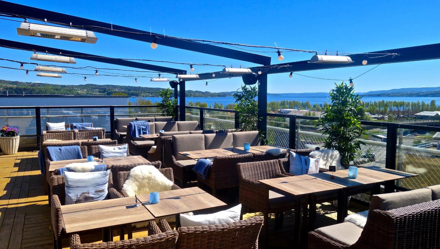 The hotel has modern conference facilities and function rooms ideal for weddings, anniversaries and birthdays. In summer, our rooftop restaurant offers the best views in Gjøvik, where you can savour delicious summer dishes prepared with fresh local produce.