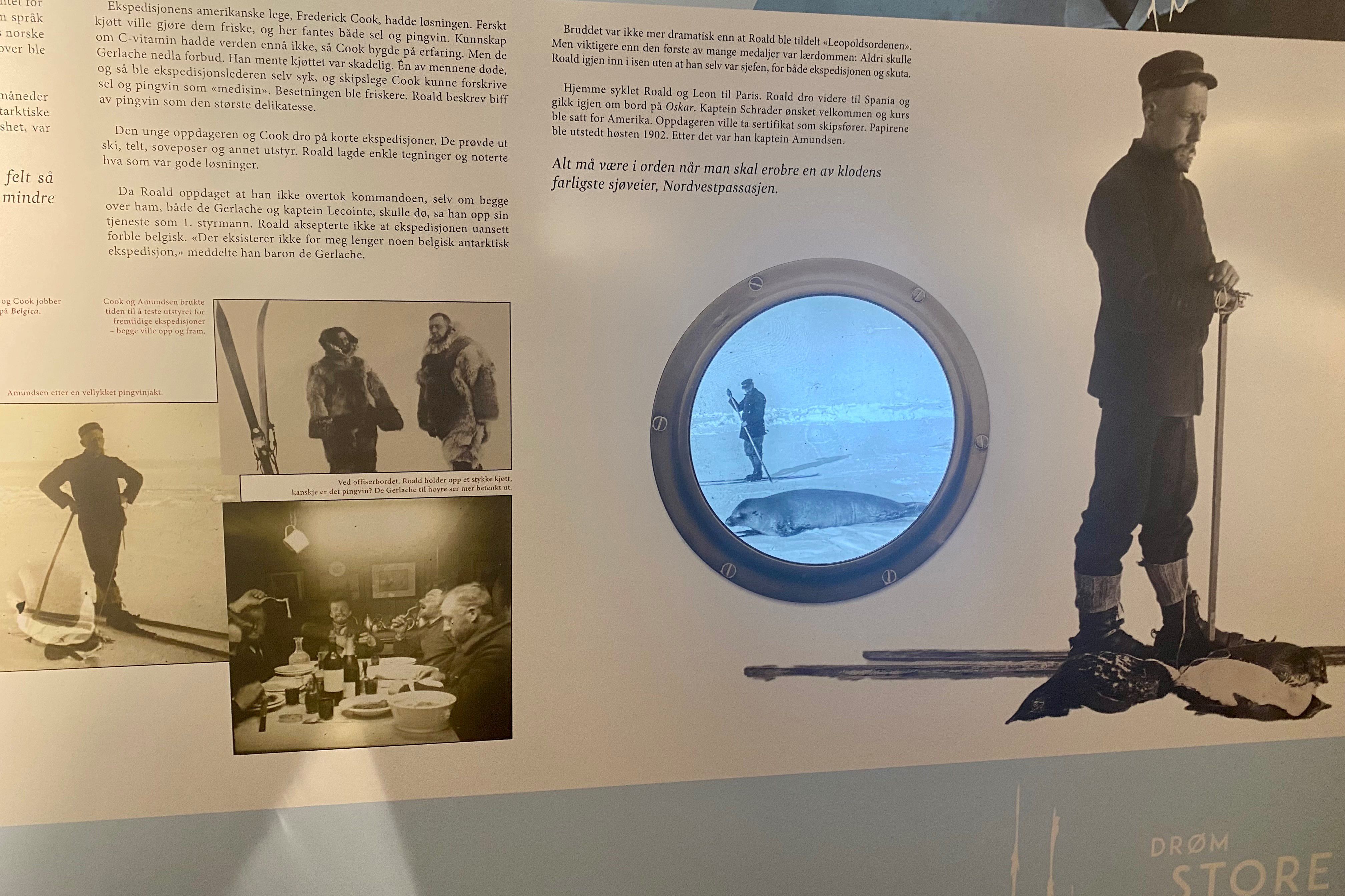 The farm is now a museum. The old “captain’s house” is one of the best preserved in the country, and contains furniture from the period and souvenirs from Amundsen’s expeditions. Our guides are ready to take you on a tour of Amundsen’s dramatic life.