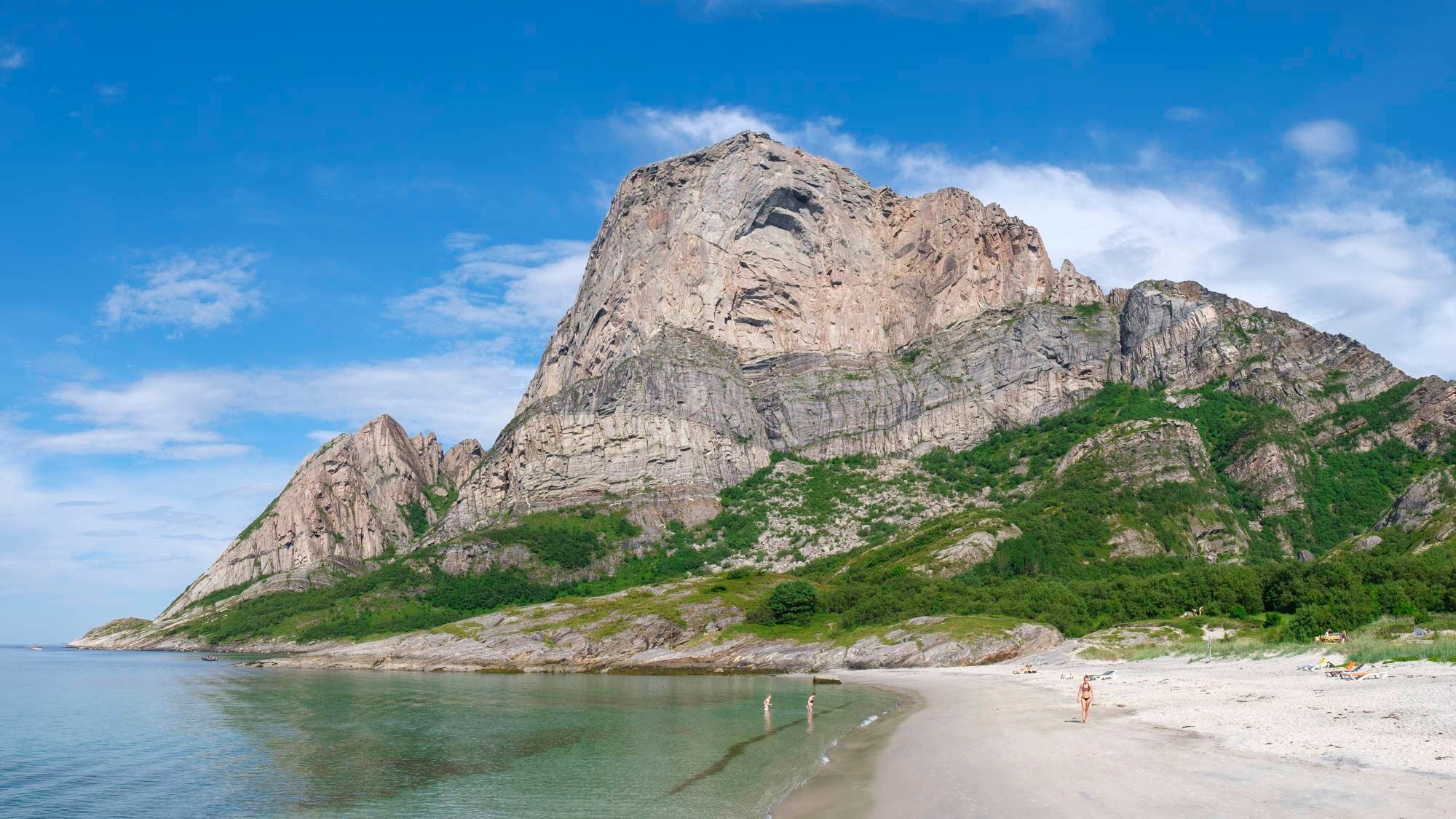 The enchanted island with chalk-white beaches and Rødøyløva lies in the middle of an endless archipelago, surrounded by towering mountain peaks, deep fjords, and small fishing villages facing the open sea.