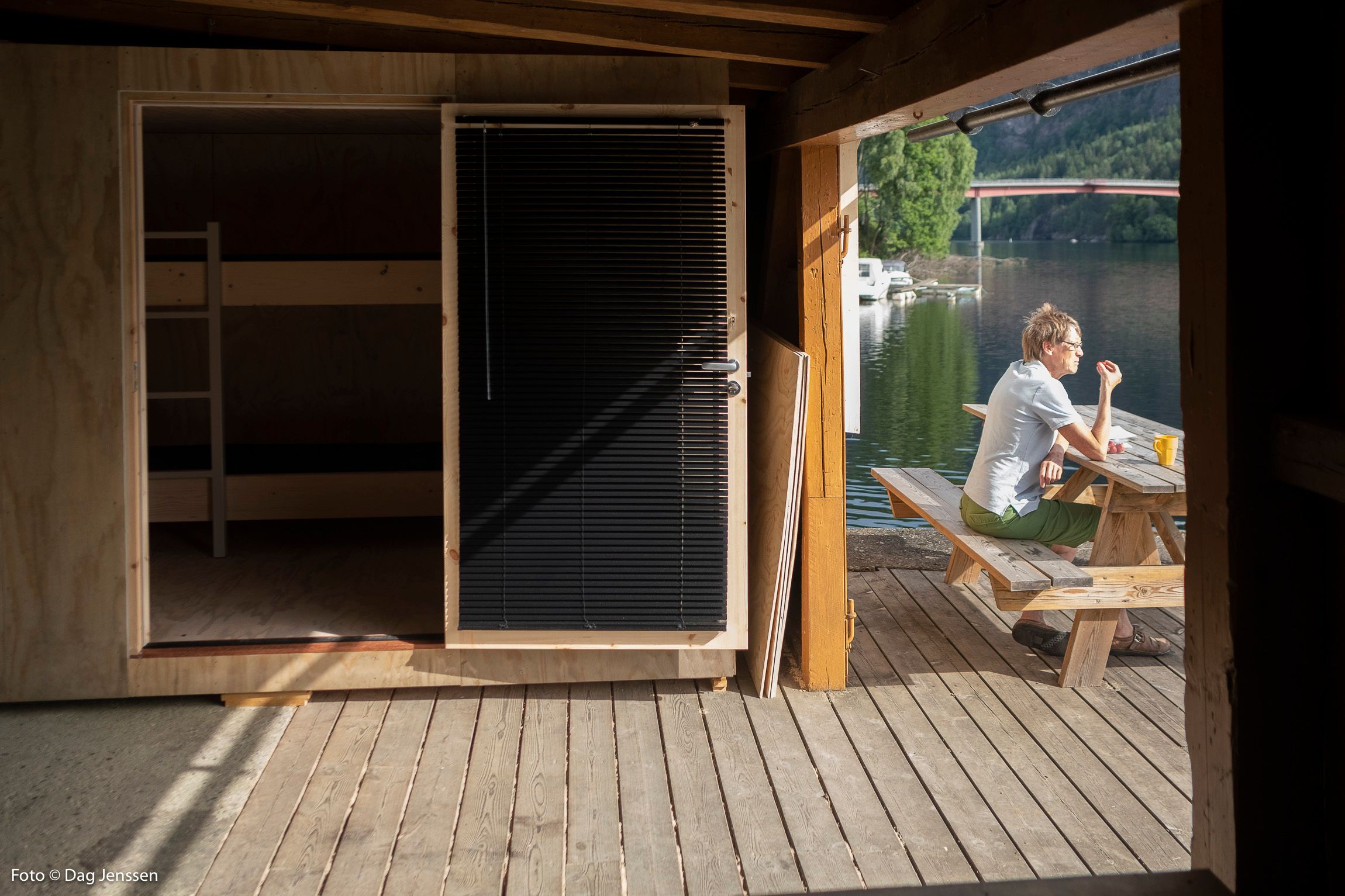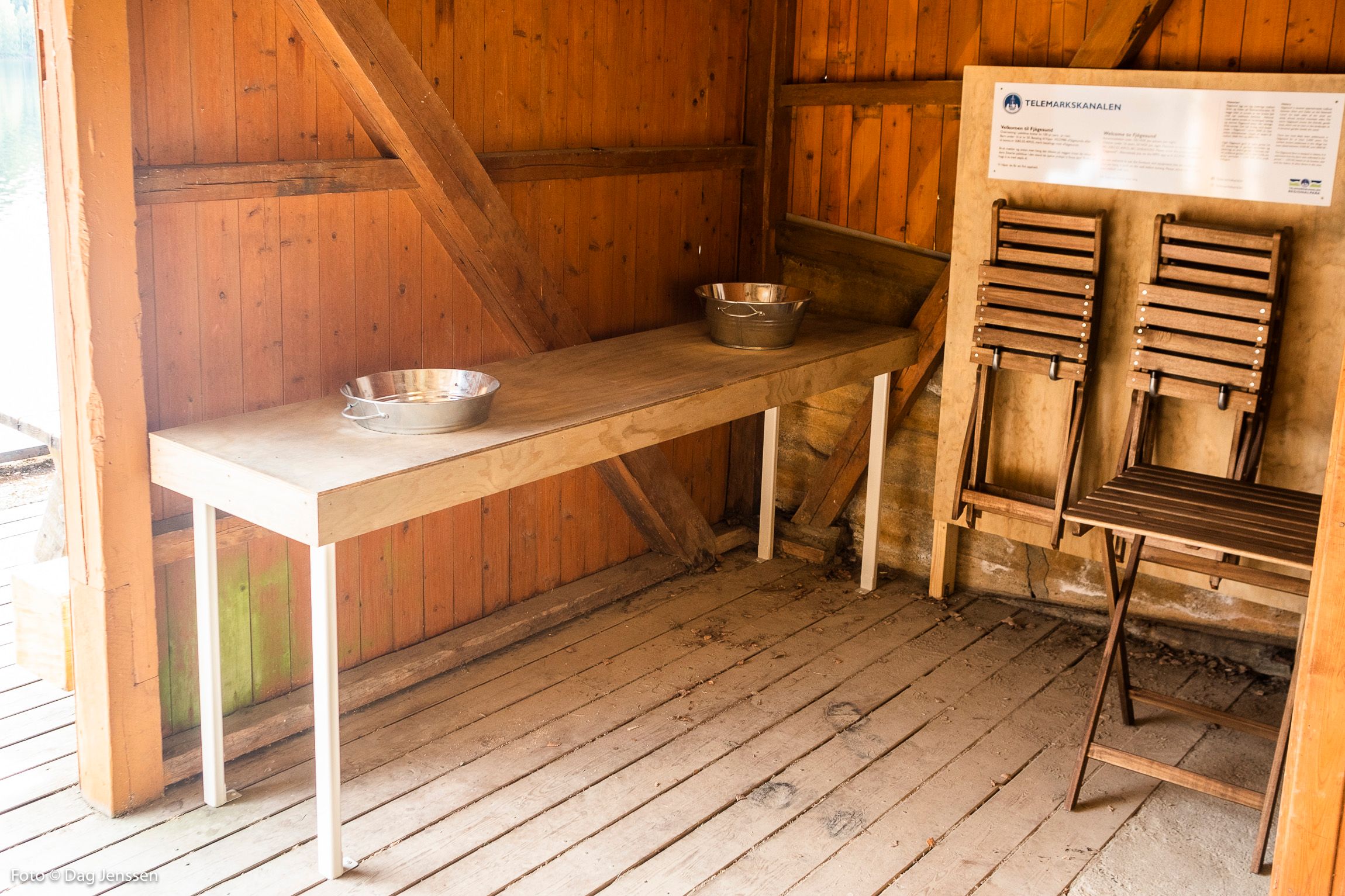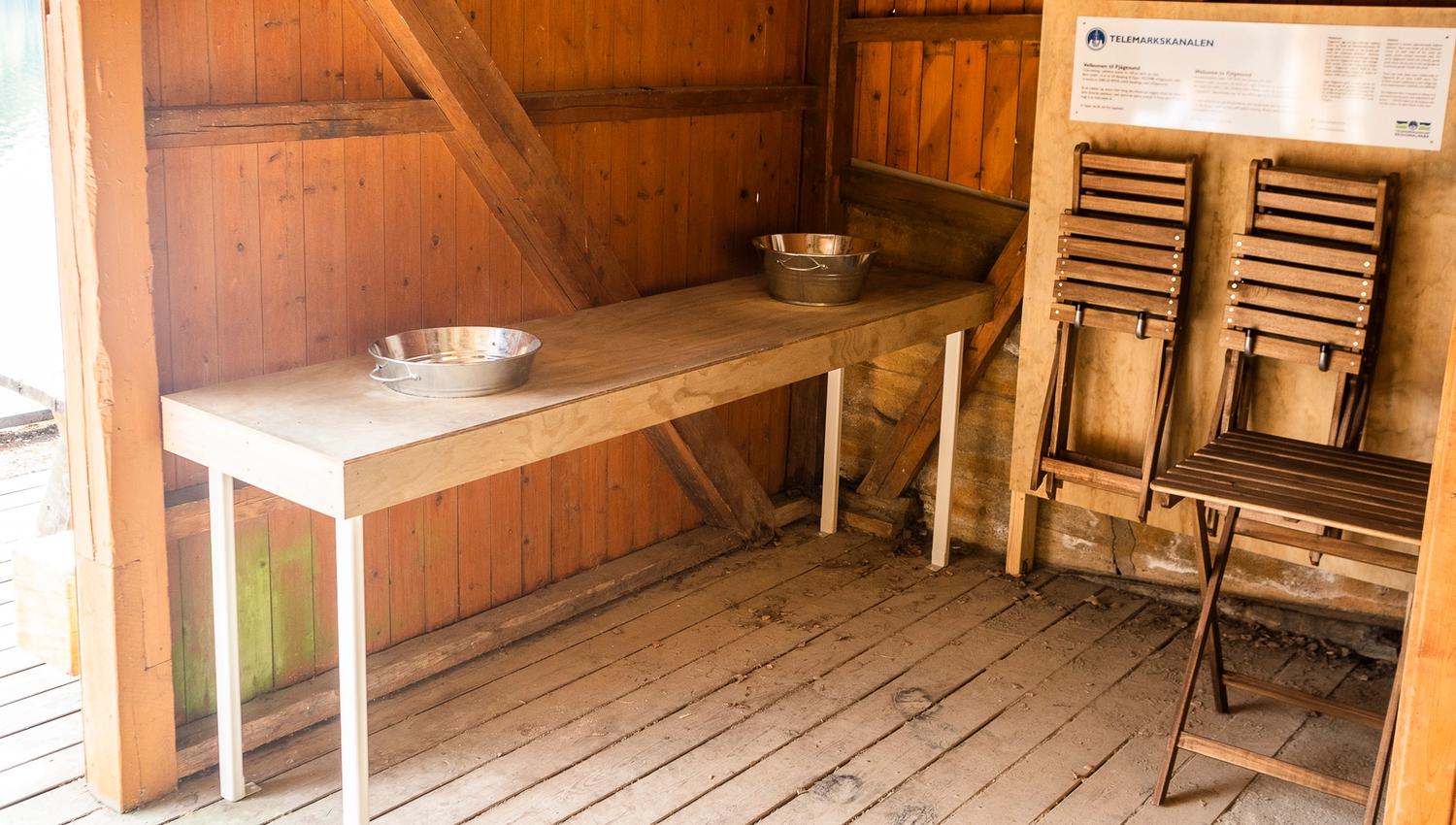 The sleeping box Fjågesund is for travelers along the Telemark Canal, for cyclists and paddlers. The sleeping box has accommodation for four people and is equipped with electricity. There is also a simple kitchen counter for cooking, as well as chairs and tables. There is also a toilet. There is power outlet inside the sleeping box for charging the phone etc. There is no access to drinking water, so you must bring it. Also bring a sleeping bag to lie in.