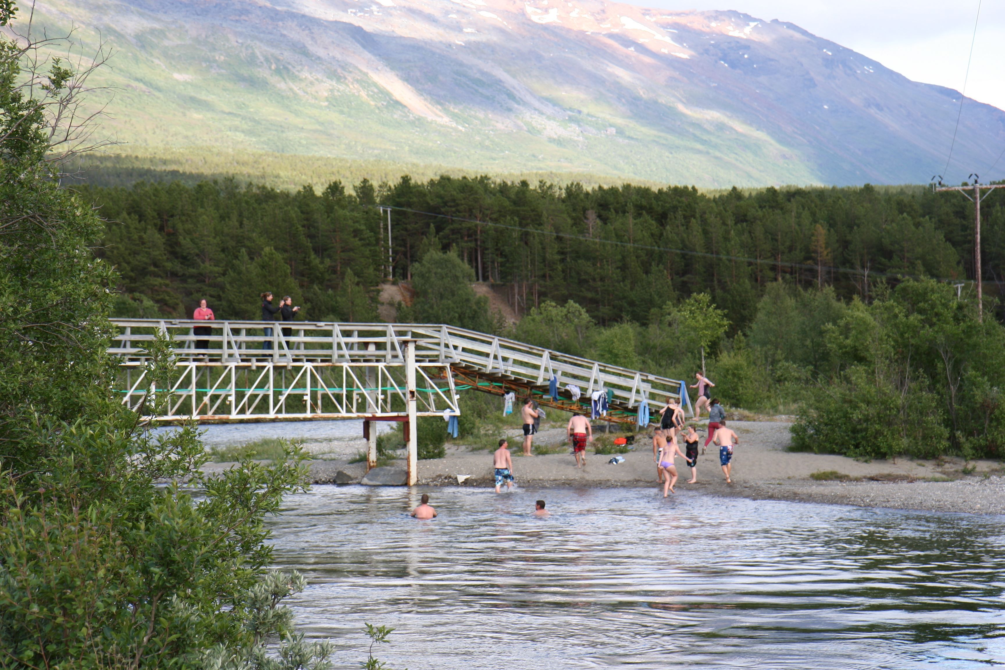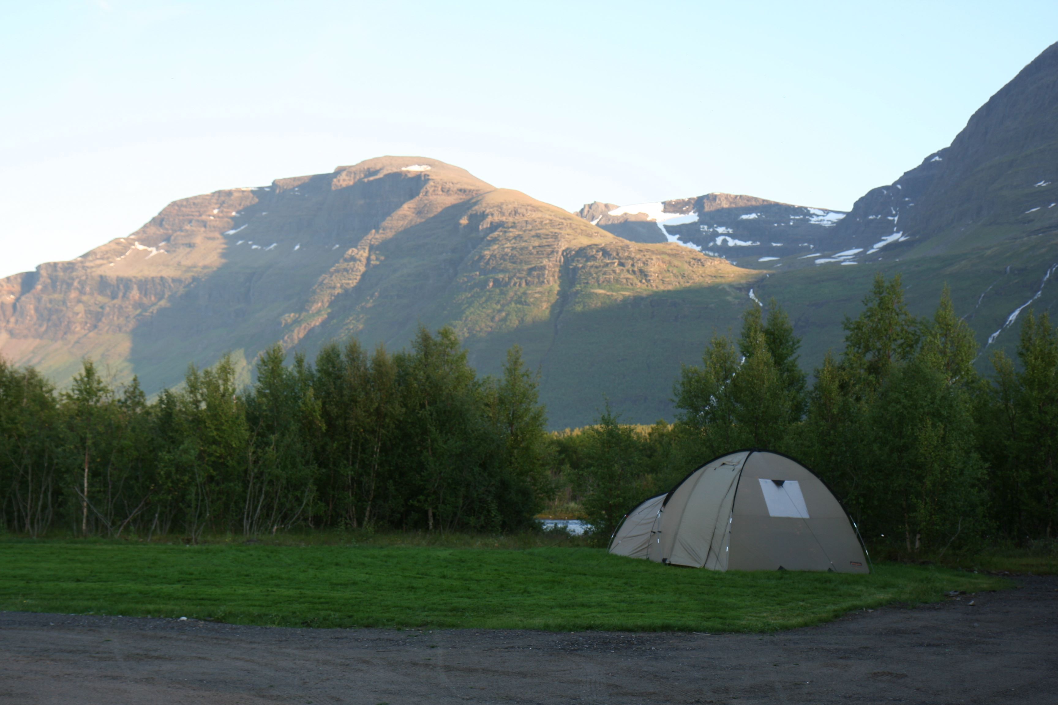 Skibotn is known for low rainfall. Strandbu Camping is on the eastern side of the Lyngenfjord, approx. 120 km from Tromsø, 290 km from Alta and 40 km from the Finnish border. Services in Skibotn include a supermarket, post office, petrolstation, another camping ground, and a summer cafe.