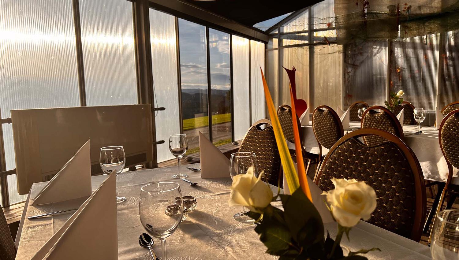The special feature of the Greenhouse is that it changes with the seasons. Here, you can see the wind rustling outside, hear the rain drumming on the roof, feel the sun's warmth on your body, and experience the soothing silence as darkness falls and candles are lit. Whether it feels like a garden party in the summer, experiencing the ambiance as night falls, or surrounding yourself with the Christmas spirit with snow and lights when winter comes to Yttervik, you will always find the right atmosphere for your parties, meetings, and courses with us.